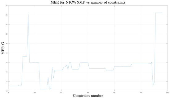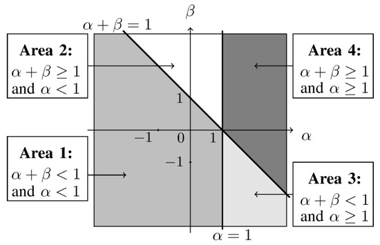 Update rules for G correspondto an unconstrained -WNMF driven by Equation (12) since no information is available on G. Their validity is only guaranteed within the convex domain, i.e., for . Outside this domain, some additional assumptions on the reconstructed data are needed to ensure the local convexity property [23]. As we chose to set and so that they belong to area 2 in Figure 3, the convexity domain reduces the possible area to the intersection between area 2 and the half-plane .