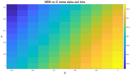 Cichocki et al. [23] study the influence of the parameters and on the robustness of the estimated data (they also establish general connections between the general -divergence and the scaled -order -divergence with an zoom of its arguments). To this aim, they express the sensitivity to outliers by computing the differentiation with respect to an unknown parameter here replaced for simplicity with an entry of F, namely , i.e.,