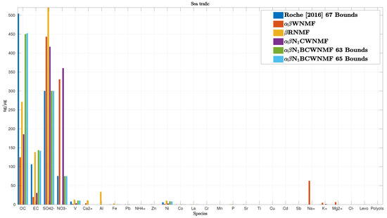 - Limem, A.; Puigt, M.; Delmaire, G.; Roussel, G.; Courcot, D. Bound constrained weighted NMF for industrial source apportionment. In Proceedings of the 2014 IEEE International Workshop on Machine Learning for Signal Processing (MLSP), Reims, France, 21–24 September 2014. [Google Scholar]
