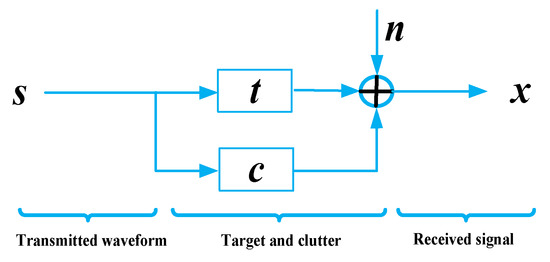 As illustrated in Figure 1, the target and clutter are modelled by the finite impulse response filter, and the waveform is assumed to be energy-limited. denotes a transmitted waveform with length and denote the TIR and CIR, respectively. According to the radar signal model in [8], it is assumed that to simplify the derivations. If , it is necessary to apply a zero-filling operation to the TIR to make the TIR and CIR sampling points equal. denotes the sum of the noise and the interference, . Let , and x is the echo with length . Then, the model can be described as: