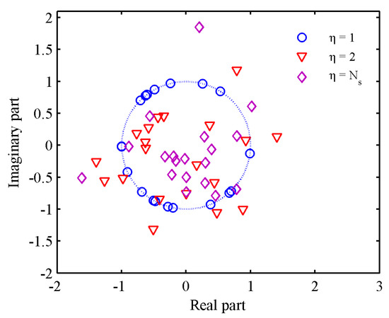 In this subsection, we demonstrate the effectiveness of the proposed method. First, we give the typical set of eigenvalues for the normalized matrices and as shown in Figure 2.