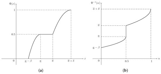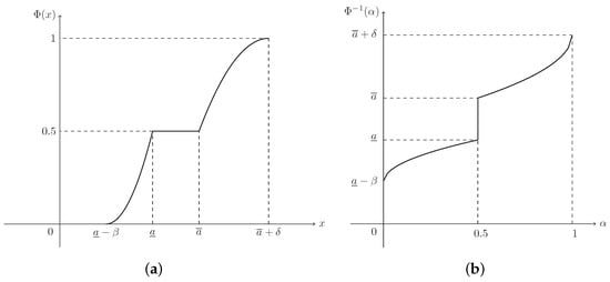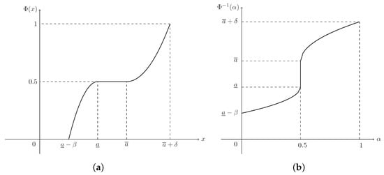 Definition 5. (Zhou et al. [35]) An LR fuzzy interval ξ is said to be regular if its CD, , is continuous on and strictly increasing on . Definition 6. (Zhou et al. [35]) Suppose that is a regular LR fuzzy interval. Then its inverse credibility distribution (ICD) is defined as Please note that the ICD,