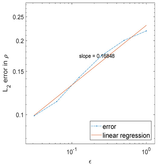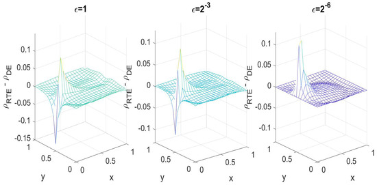 where , and . is the characteristic function, and the center is given. It is hard to visualize a 3D object, and we only plot the difference in between the radiative transfer and diffusion solutions for different in Figure 3. We observe that as , the error decreases, as plotted in Figure 4.