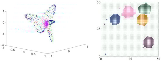 The key was a mapping back to the original two-dimensional space. For details see the original article [], but with this additional piece of information (and using k-means) the location of the food sources could be established. See Figure 12.
