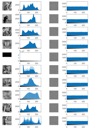 As one of the most important information carriers, hundreds of millions of images are generated, stored, and transmitted every day. How to ensure image security has become a very hot topic of research in recent years. Image encryption is one of the most important image security methods. Encryption algorithms can be roughly classified into two categories: symmetric key (private key) and asymmetric key (public key) algorithms. The former uses the same key for both encryption and decryption, while the latter uses a key for encryption and another key for decryption. Typical private key algorithms include data encryption standard (DES), international data encryption algorithm (IDEA), advanced encryption standard (AES) and so on. Rivest-Shamir-Adleman (RSA) and Elliptic-curve cryptography (ECC) are among the very popular public key algorithms. The symmetric key algorithms are fast, efficient, but difficult to manage keys, while the asymmetric encryption algorithms are slow but have higher security [1,2]. Due to the inherent characteristics of images such as strong correlation, high redundancy and bulky data capacity, the above mentioned encryption algorithms are usually not suitable for direct applications in images. To address this issue, a variety of image encryption algorithms have been proposed in recent years [3,4,5,6].
