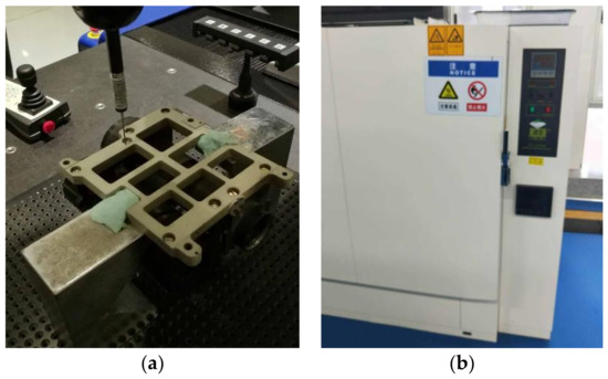 Experimental setup: (a) Coordinate measuring machine and (b) Constant-temperature test chamber.