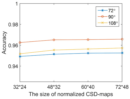 Figure 8. The relationship between detection accuracy of the proposed method and the size of normalized n-CSD-map.