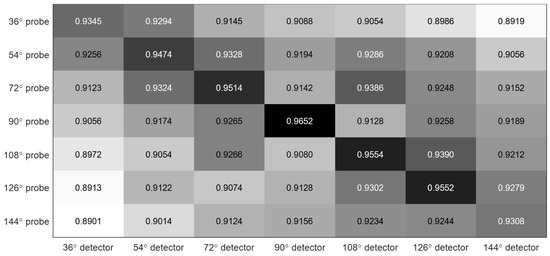 The confusion matrix of cross viewing angle detection accuracy of this method using 3-CSD-maps.