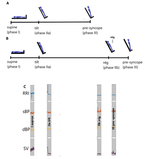 - Brignole, M.; Menozzi, C.; Del Rosso, A.; Costa, S.; Gaggioli, G.; Bottoni, N.A.; Sutton, R. New classification of hemodynamics of vasovagal syncope: Beyond the VASIS classification. Analysis of the pre-syncopal phase of the tilt test without and with nitroglycerin challenge. Vasovagal Syncope International Study. Europace 2000, 2, 66–67. [Google Scholar] [CrossRef] [PubMed]