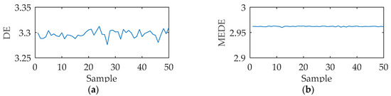 The trend of entropy change: (a) dispersion entropy (DE); (b) morphology envelope dispersion entropy (MEDE).