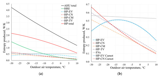 When analyzing HVAC systems, we can distinguish two large general groups of energy transformers: The first—fans, pumps, compressors that transform electrical energy into kinetic, potential and, via the losses in these processes, into thermal energy of fluids. The other group is heat exchangers. These energy transformers are usually integrated into the ventilation air handling unit (AHU). In modern AHUs so-called thermodynamic or active recovery systems [2], heat exchangers, and heat pumps are devices connected in terms of such energy transformation processes. In order to improve the efficiency of energy analysis of such various devices and the processes taking place therein, thermodynamic analysis is usually used along with the methods applied therein, such as exergy analysis, entropy generation minimization, and thermo-economics [3].