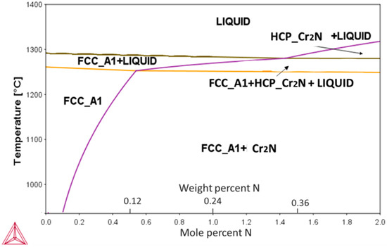 The calculated pseudo-binary phase diagram of an N-alloyed CoCrFeMnNi alloy is presented in