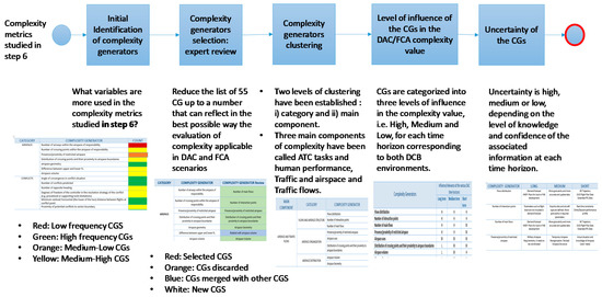 The COTTON (Capacity Optimisation in TrajecTory-based OperatioNs) project approach for the identification of CGs, summarised in Figure 2, is a top-down review of existing complexity metrics combined with a bottom-up analysis of complexity generators in the context of DAC and FC, experts review, clustering and characterization of the level of influence and uncertainty.