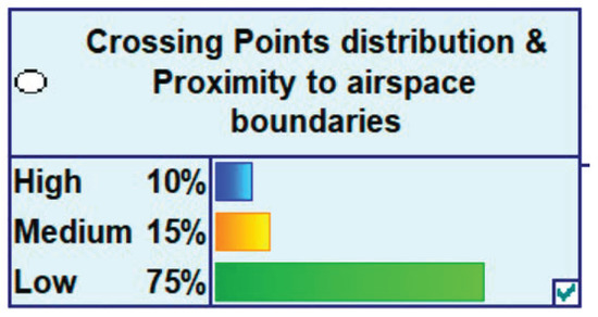 Our model is concerned with the propagation of the uncertainty in the various variables that influence complexity of an ATM scenario. Therefore, the state space of each parent node represents the level of uncertainty that affects a particular variable or complexity generator. The uncertainty affecting each variable has been discretised into three different states: (i) low uncertainty; (ii) medium uncertainty; and (iii) high uncertainty. Therefore, all the nodes have these three states. Then, a probability is allocated, in each node, to each one of these three states, depending on the nature of the variable and the degree of confidence on the information available for each variable at the various time horizons under consideration. The probability distribution at each node represents the probability distribution of the uncertainty of a particular parent node (complexity generator). These three levels are defined by the SESAR Trajectory Based Operations (TBO) environment and by the SESAR Capacity Management processes, Dynamic Airspace Configuration (DAC) and Flight Centric ATC (FCA). Figure 4 illustrates, as an example, how the state space of a parent node is defined in the network.