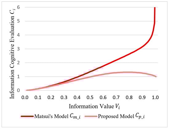 Along with the information value, Vi, the information cognitive evaluation, Ci, values based on Matsui’s Model, Cm_i, and the proposed model, Cp_i, are shown in Figure 5.