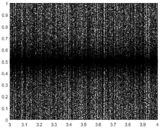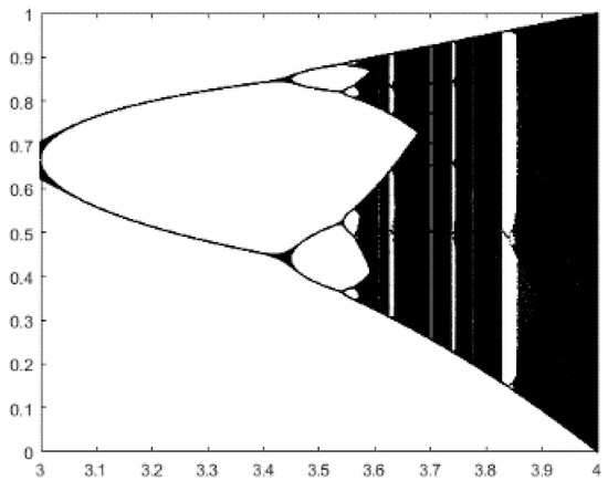 For instance, logistic chaos is widely used because of its simple expression and good performance, and it is shown in Figure 2. As can be seen, the logistic system has missed certain values. In consideration of the multilevel color image segmentation problem, this paper proposes a new chaotic map as follows:
