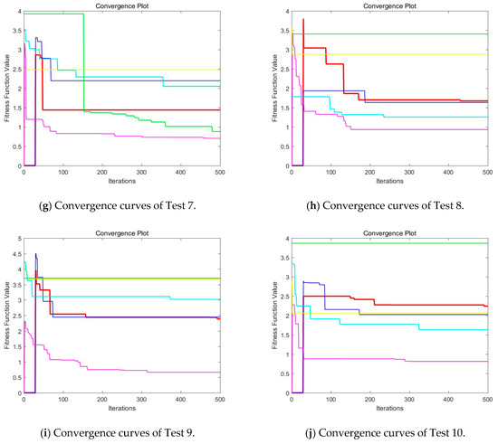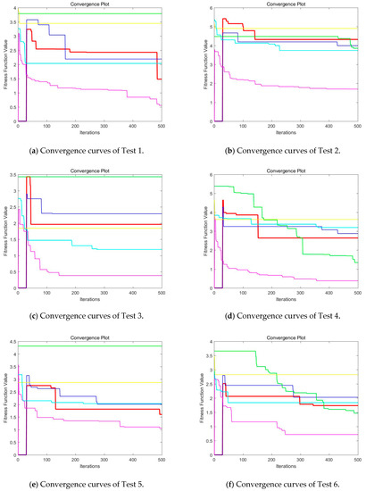Then, when comparing the differences in CPU time between various algorithms, it can be found that CEFO and EFO are significantly faster than ABC, BA, WDO, and BSA. Moreover, the running time of CEFO has decreased about 12.26% when comparing with EFO, which indicates the modified electromagnetic field optimization algorithm has a faster convergence rate. As for other algorithms, ABC has the longest time of computation due to its slow convergence rate, it needs nearly 30 times as much as CEFO. Afterward, BA, WDO, and BSA have an approximate running time, they are about 15 times longer than CEFO. With the increase of execution time, the practicability of the algorithm will be reduced. For a clearer presentation of convergence speed about these algorithms, the convergence curves are shown in Figure 21.