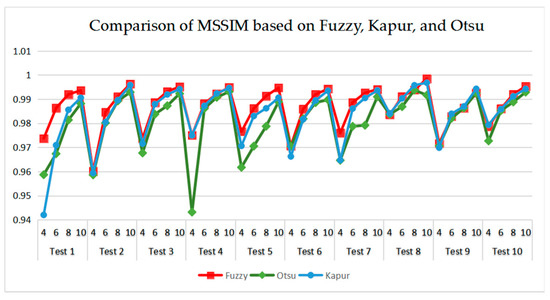 Comparison of Mean Structural Similarity (MSSIM) based on fuzzy entropy.