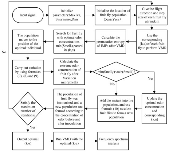 2.3. VMD Based on the Immune Fruit Fly Optimization Algorithm