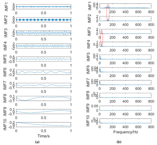 Time domain diagram (a) and Frequency domain diagram(b) of EEMD.