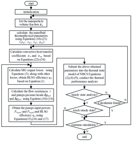 The mathematical model of NBCS in Section 2.3 is programmed using MATLAB. The model calculation is conducted in steps, as shown in Figure 3, and is described in detail in the following.
