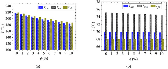 - According to the initial work condition, the convective heat transfer coefficients and can be obtained based on Equations (22)–(34).