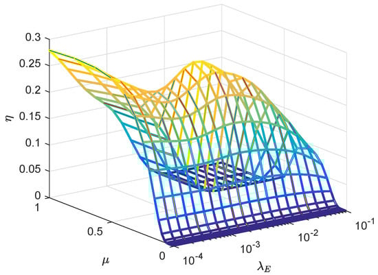 Figure 8 presents the effects of transmit power allocation factor and the eavesdropper density on the secrecy throughput. From the simulation results, it shows that there exists an optimal transmit power allocation factor for maximizing the secrecy throughput with the changing . On the other hand, when the power allocation factor is smaller, no matter how high is, the connection is interrupted, and the reliability of the system is not guaranteed. As both and are sufficiently high, the secrecy outage occurs and the security is not guaranteed. It reveals that the power allocation of the information signal and AN need to be properly set depending on different system parameters for increasing the secrecy throughput.