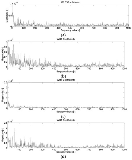 - Jayathilake, A.A.C.A.; Perera, A.A.I.; Chamikara, M.A.P. Discrete Walsh-Hadamard transform in signal processing. IJRIT Int. J. Res. Inf. Technol. 2013, 1, 80–89. [Google Scholar]