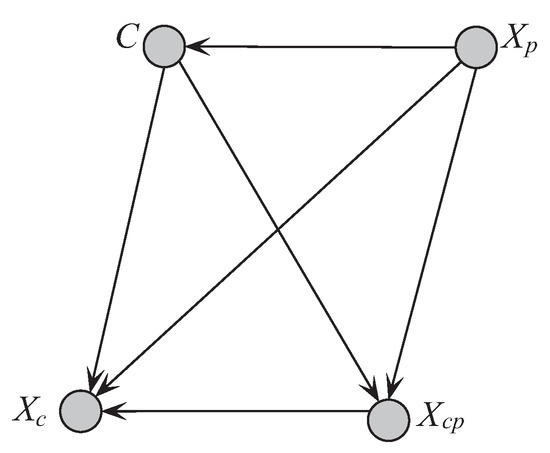 The relationships between and its parents corresponding to Equations (7) and (10) are shown in Table 2.