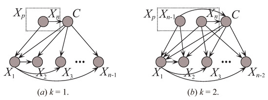 Since KDB can be extended to describe dependence relationships of arbitrary degree and thus demonstrates its flexibility, researchers proposed many important refinements to improve its performance [18,19,20,21]. Pernkopf and Bilmes [22] proposed a greedy heuristic strategy to determine the attribute order by comparing where ranks higher than in the order, i.e., . Taheri et al. [23] proposed to build a dynamic structure without specifying k a priori, and they proved that the resulting BNC is optimal.