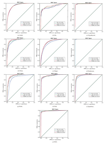 We also has been introduced the ROC (Receiver Operating Characteristics) cure [33,34] to evaluate performance of machine-learning algorithms. The ROC curve is created by plotting the true-positive rate (TPR) against the false-positive rate (FPR) at various threshold settings. The TPR is also known as sensitivity or recall in machine learning. The FPR is also known as the fall-out or probability of false alarm and can be calculated as (1 - specificity), where specificity is the true negative rate (TNR). All formula involved are defined as follows: