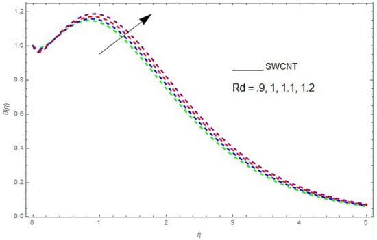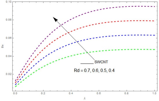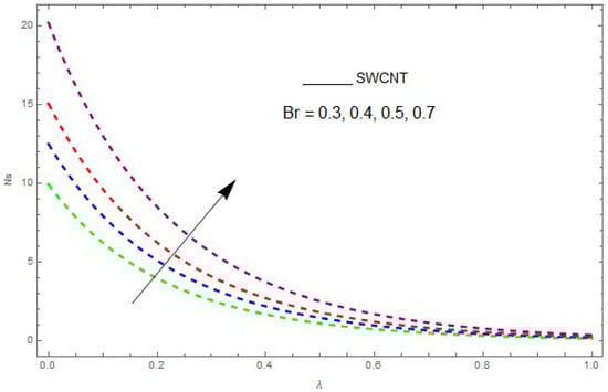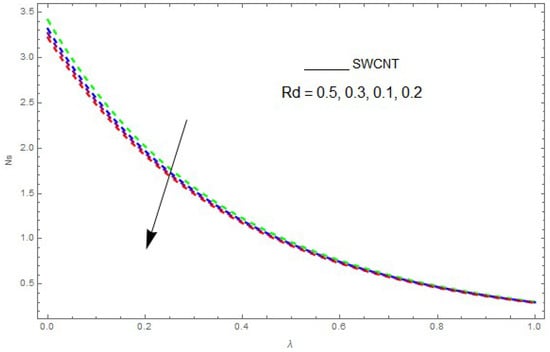 - Entropy generation is increased with the increase of , and radiative heat flux.