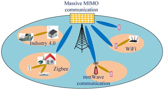 - Marzetta, T.L. Noncooperative cellular wireless with unlimited numbers of base station antennas. IEEE Trans. Wirel. Commun. 2010, 9, 3590–3600. [Google Scholar] [CrossRef]