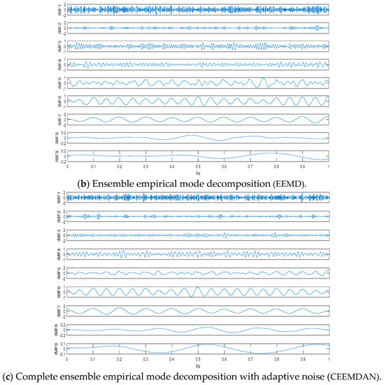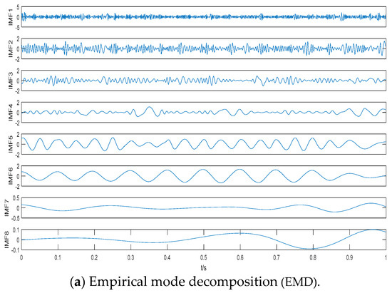 - Damasevicius, R.; Napoli, C.; Sidekerskiene, T.; Wozniak, M. IMF mode demixing in EMD for jitter analysis. J. Comput. Sci. 2017, 22, 240–252. [Google Scholar] [CrossRef]
