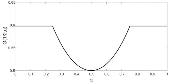 The functional , for , , as a function of q. The figure corresponds to Example 1, where , for , with and , and . Clearly, is not convex in q, but rather quasi-convex in q.