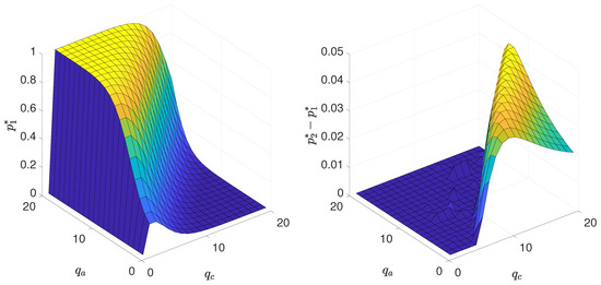 Unfortunately, we are not able to calculate analytically other steady states, i.e., generally solve Equation (8) in the form for arbitrary values of and . However, following [30] we can easily derive the opposite relation: