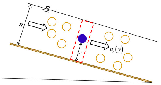 Schematic diagram of the velocity lag between the sediment particle and the surrounding fluid in sediment-laden flow. In this figure, is velocity lag at a vertical distance from the channel bottom, and is the water depth of sediment-laden flow, respectively. Here the velocity of the sediment particle is the bulk velocity of the sediment particles (i.e., it is defined statistically as the average velocity of many sediment particles), which is different from the velocity of individual sediment particles.