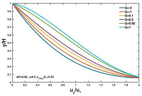 Similar to Singh and Cui [27], we defined non-dimensional entropy parameter as follows, , in this study. Dividing Equation (13) by , we can obtain the velocity lag in terms of the non-dimensional entropy parameter as follows
