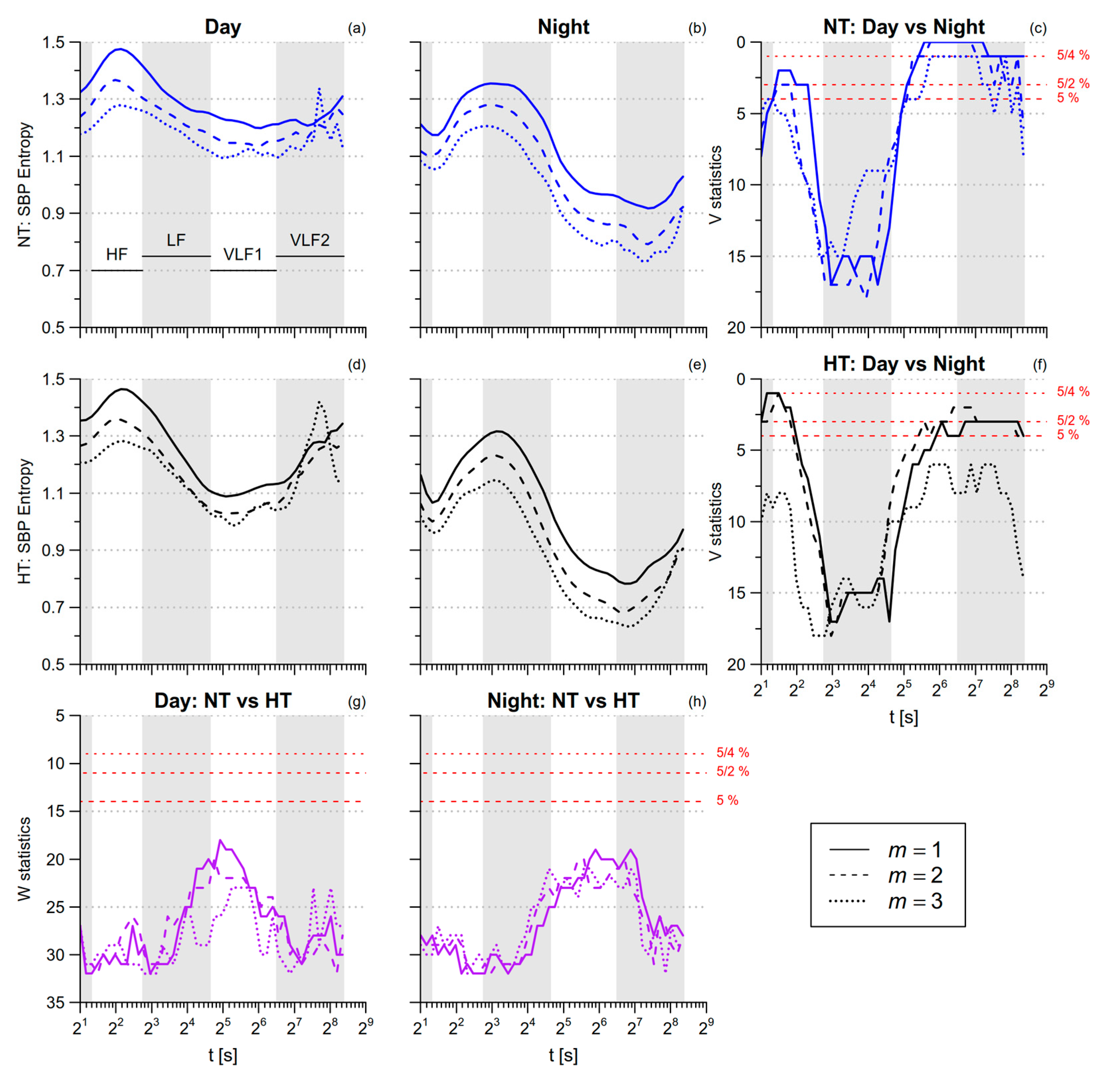 - Trunkvalterova, Z.; Javorka, M.; Tonhajzerova, I.; Javorkova, J.; Lazarova, Z.; Javorka, K.; Baumert, M. Reduced short-term complexity of heart rate and blood pressure dynamics in patients with diabetes mellitus type 1: Multiscale entropy analysis. Physiol. Meas. 2008, 29, 817–828. [Google Scholar] [CrossRef] [PubMed]