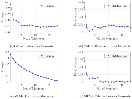 with respect to , where the second term with for some density are the power moment constraints on the density , are the corresponding Lagrange multipliers, and m is the number of moments. The first term in Equation (1) is referred to as the Boltzmann–Shannon–Gibbs (BSG) entropy, which has been applied in multiple fields, ranging from condensed matter physics [14] to finance [15]. For the case of , the Lagrange multipliers can be calculated analytically; for , they must be determined numerically.