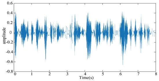 According to the analysis presented above, we found that the devised PAPMCC algorithm had a lower steady-state MSE when and were selected. Herein, the estimation behaviors of the PAPMCC was compared with the AP, RZA-AP,ZA-AP, and PAP algorithms. All algorithms were investigated by using WGN, colored noise, and speech signal as input signals, and the sampling frequency for the speech signal was 8 kHz. The used speech signal in this simulation is presented in Figure 6. The performance comparisons of the PAPMCC algorithm with various inputs for network echo channel are presented in Figure 7, Figure 8 and Figure 9, respectively. The PAPMCC algorithm achieved the lowest NM for the sake of comparison with the ZA-AP, AP and RZA-AP algorithms. The PAPMCC algorithm had lower steady-state error while its convergence speed was similar to that of the PAP algorithm. When the input signal was speech signal, the proposed PAPMCC was still better than the related algorithms by considering the convergence and estimation error.