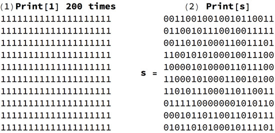 The algorithmic probability [12,14,31] of a string s, denoted by provides the probability that a valid random program p written in bits uniformly distributed produces the string s when run on a universal (prefix-free (the group of valid programs forms a prefix-free set (no element is a prefix of any other, a property necessary to keep ); for details, see [32,33])) Turing machine U. Formally,