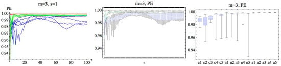 The length of the patterns is called the embedding dimension. Following [], low orders of m are recommended for practical purposes. We will use , and 5.