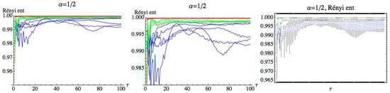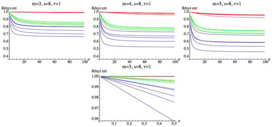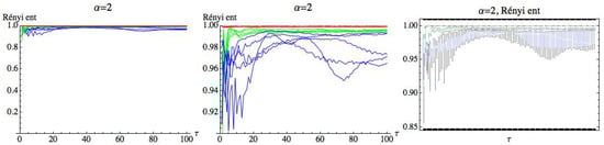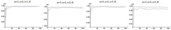 Permutation entropy (PE), also called Shannon entropy (SE), is obtained when tends to 1 in Rényi permutation entropy. Liang [] reported that the class of permutation entropy with the best results when EEG during different anesthesia states are considered is Rényi entropy. Moreover, the choice of the parameter is not a trivial question; see [].