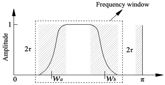 As seen, the frequency window Λ is expressed as [wa, wb], which represents the center frequency of the upper and lower cut-off bands of the window, where the shadow part is the transitional region of the segment with a width of 2τ.