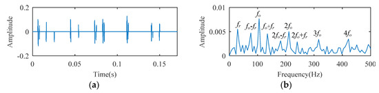 Because the vibration signal x = {x(kT), k = 0, 1, 2, …, N − 1} (N represents the signal length and T represents the sample interval) collected by sensors is a discrete signal, the DTDT should be discretized. Using Fourier transform and convolution theory, Equation (4) can be rewritten as