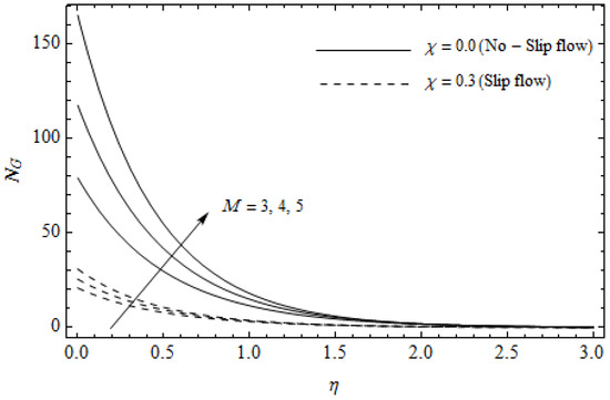 Effect of magnetic parameter M and slip parameter on entropy generation with = 0.3, m = 0.5, Ec = 0.2 and Pr = 2, and .
