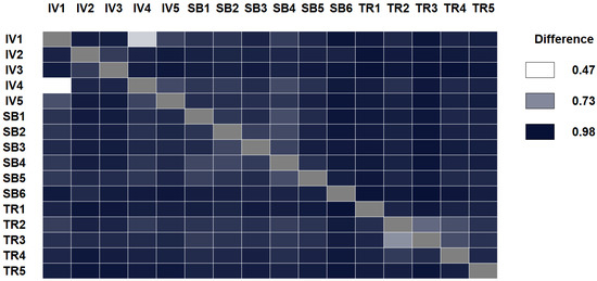 Comparison of papers from and outside the Visualization research field using Normalized Conditional Compression. In this case, some papers, such as VIS3, VIS4, and VIS5 exhibit smaller differences with non-visualization papers than with some visualization papers (e.g., VIS2).