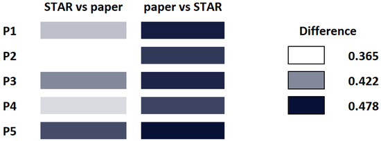 For this comparison, we downloaded a STAR on molecular visualization, and several papers of the same field. The results can be seen in Figure 7. As we expected, the difference from the STAR to the papers is smaller than from the papers to the STAR, in all cases. NCC also passes this test. Like in previous cases, the concrete papers are enumerated in the Appendix A and Appendix B.