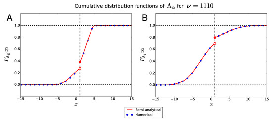 In Equation (12), is the component of that describes the statistical behavior of the continuous values of X. Moreover, represents the set of the discrete values of X, at which the cumulative distribution function is (possibly) discontinuous. In the specific case when or , by comparing Equation (12) with Equations (5), (6) and (9), we get: